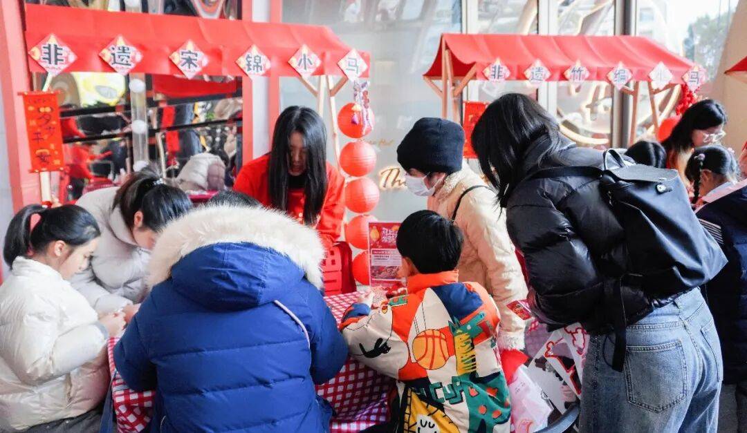 台上,古筝、琵琶、二胡与电子音效创新融合,经典民乐在律动中焕发新生,经典旋律与潮流节奏相互呼应,引发观众阵阵喝彩。台下,同步开设六大新春主题手作体验区:竹编小马书签精巧灵动,非遗鱼灯点亮融融暖意,宋锦小马DIY展现织物之美,手写春联铺陈墨香祝福,更有奶皮子糖葫芦与剪纸艺术吸引不少亲子家庭动手尝试。市民李雅茹带着孩子一边编制竹编书签,一边感慨:“让孩子亲手做一件传统手工艺品,比买现成的礼物更有意义,也是一种文化传承。”
