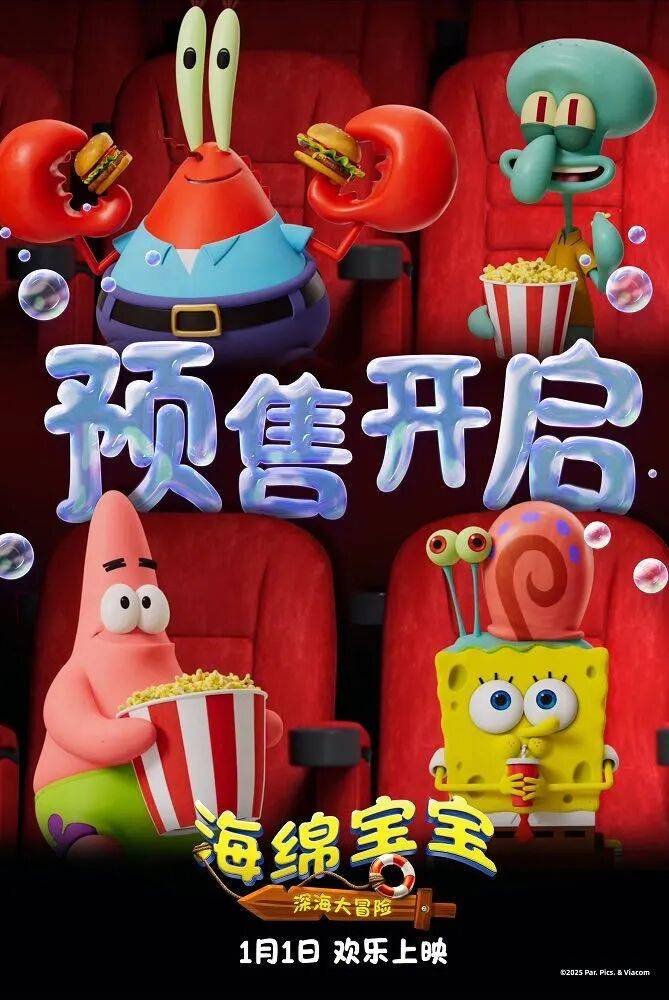 《海绵宝宝:深海大冒险》已于昨天官宣开启全国预售,并同步释出「全新挑战」预告,内地定档 2026 年 1 月 1 日元旦上映。