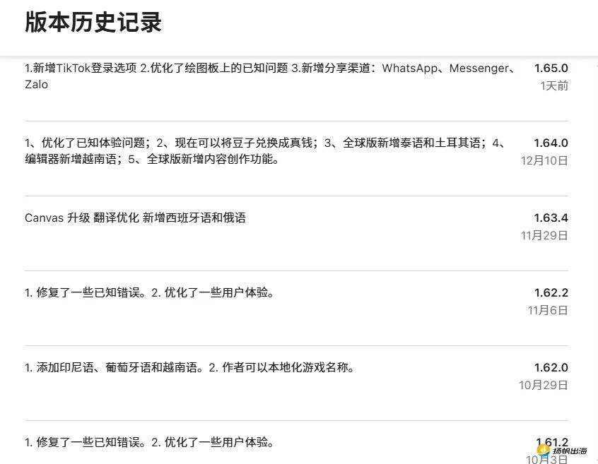 从《Builda》在APP Store的版本更新来看,近两个月来,其明显加快了产品的全球化速度。在10月29日的更新中,新增了印尼语、葡萄牙语和越南语,为在越南市场的增长打下基础;11月29日,其优化翻译,并新增西班牙语和俄语。